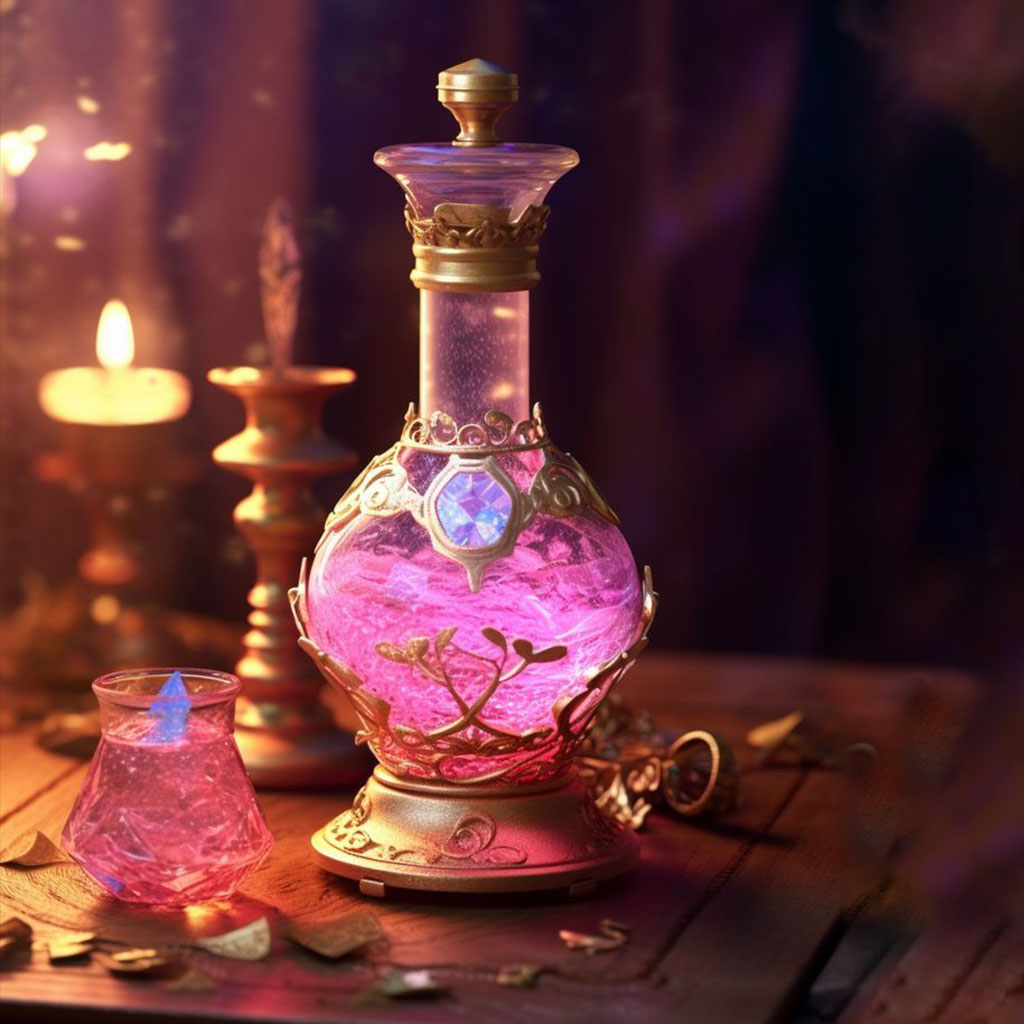 Brewed from the petals of a moonflower and the essence of a unicorn's horn, the Elixir of Enchantment is a powerful love potion that can ignite feelings of passion and desire. However, this potion must be used with caution, as it can lead to obsession and heartbreak if not administered wisely. It is said that the Elixir of Enchantment can be used to mend broken hearts or strengthen existing relationships, but it can also be a dangerous weapon in the hands of the unscrupulous.
