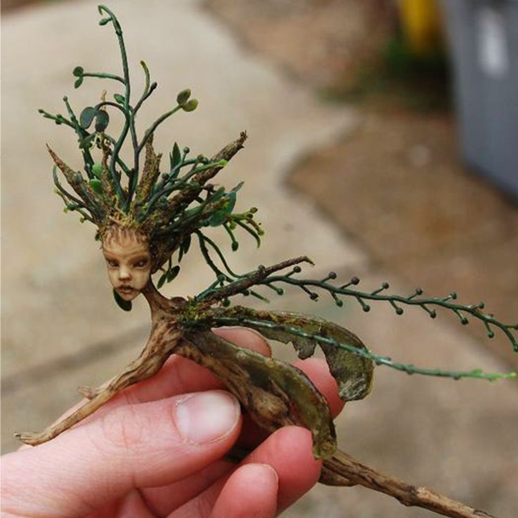 This delicate creature, crafted from twigs, leaves, and moss, is a Sylvan Sprite, a guardian of the forest. With its ethereal beauty and mischievous nature, the Sylvan Sprite is said to possess magical powers that can influence the growth of plants, control the weather, and communicate with animals. Some believe that encountering a Sylvan Sprite is a sign of good fortune, while others warn that they can be mischievous and unpredictable.